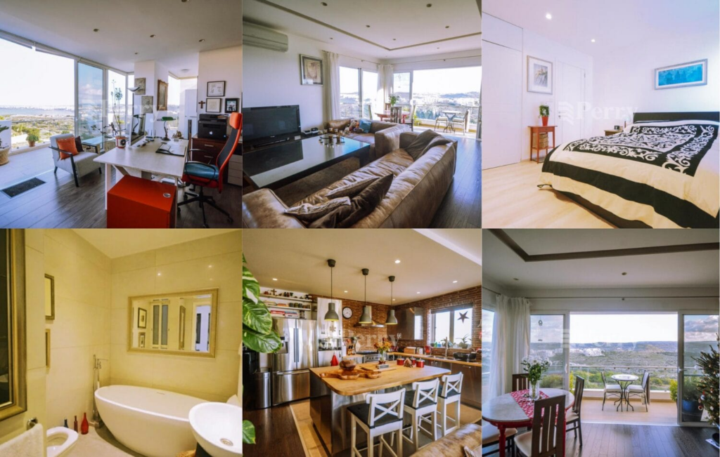 Mellieha Duplex Penthouse được thiết kế chú trọng không gian mở, ánh sáng tự nhiên và cảnh quan xung quanh, tạo nên trải nghiệm sống cao cấp cho gia đình hoặc người thuê: